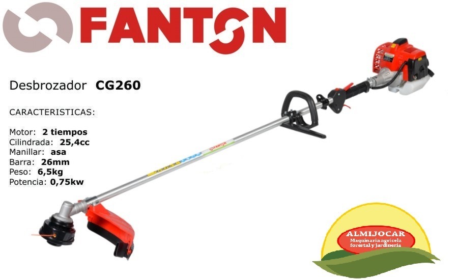 DESBROZADORA FANTON CG260 MOTOR DE 25,4cc, MANILLAR DE ASA, BARRA DE 26mm PESO 6,5Kg Y 0,75KW DE POTENCIA