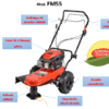 MOTOR 4 T, 170CC, CHASIS DE ACERO, AUTOPROPULSADO, ANCHO DE CORTE MAXIMO 60CM, REGULACION DE ALTURA DE CORTE (45mm-120mm), NEUMATICOS 600X5, EMBRAGUE CONEXION CABEZAL, PESO 53KG
