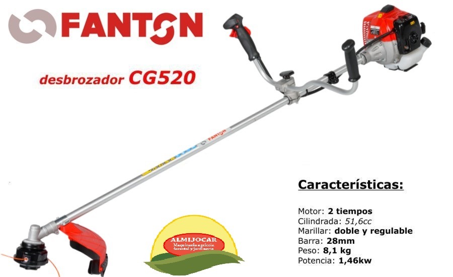 DESBROZADORA FANTON CG5200 MOTOR DE 51,6cc, MANILLAR DOBLE, BARRA DE 28mm PESO 8,1Kg Y 1.46KW DE POTENCIA