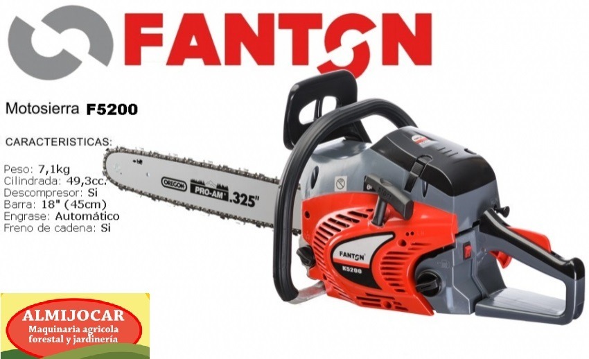 MOTOSIERRA ·MOTOR 52CC ·POTENCIA 3CV ·CARBURADOR WALBRO ·PESO 7,1Kg ·ESPADA DE 45CM ·CON DESCOMPRESOR